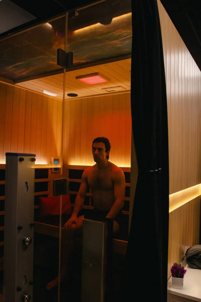 We combine the cellular benefits of red light with the detoxifying power of an infrared sauna. Unlike a dry sauna that operates at scorching temperatures, infrared saunas use light to heat your body directly.